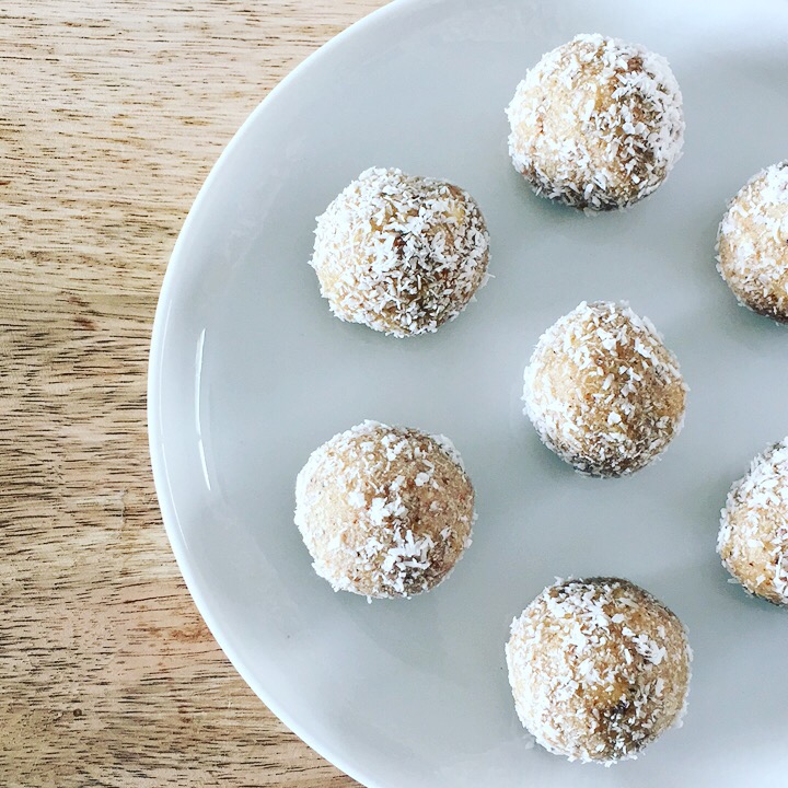 Blend all ingredients and roll in to small balls. Should make 10 Bliss Balls 🥄 Roll in desiccated coconut and store in fridge.